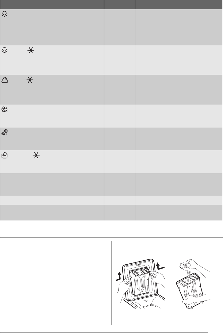 Program/Typ av tvätt Vikt Tillgängliga funktioner