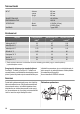 Tekniset tiedot MITAT Korkeus Leveys Syvyys 850 mm 400 mm 600 mm JÄNNITE/TAAJUUS ENERGIANKULUTUS VEDENPAINE 230 V/50 Hz 2300 W Minimi Maksimi 0,05 MPa (0,5 bar) 0,8 MPa (8 bar) Vesiliitäntä Tyyppi 20/27 Kulutusarvot Ohjelma Energiankulutus (kWh)1) Vedenkulutus (litroina)1) Ohjelman kesto (minuuttia)1) Valkopyykki 90 °C 2.2 67 160 Valko/kirjo 60 °C 1.3 62 150 Valko/kirjo 40 °C 0.75 62 140 Siliävät 40 °C 0.65 48 80 Hienopesu 30 °C 0.3 53 60 Villa 30 °C 0.