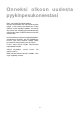 Beskrivning av panelen Kontrollpanel 9 2 3 4 5 6 7 8 10 11 1 1. Programvred 2. Knapp "Pesuteho" = Smutsgrad Tvättmaskinen har fem programområden, fyra för olika tvättmärkning : Vittvätt = Valkopesu. Syntettvätt = Siliävät. Fintvätt = Hienopesu. Ylletvätt = Villa. Samt ett för specialprogram. Med den här knappen kan du välja ett mer eller mindre intensivt tvättprogram beroende på hur smutsig tvätten är. Kontrollampan tänds.