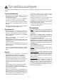 Turvallisuusohjeet Seuraavat varoitukset ovat tärkeitä yleisen turvallisuuden kannalta. Lue ne huolella ennen koneen asennusta tai käyttöä. • Laita pienet vaatteet, kuten sukat, vyöt jne. pesupussiin tai tyynyliinaan estääksesi niiden juuttumisen rummun ja pesualtaan väliin. Yleinen turvallisuus • Vian ilmetessä älä yritä korjata sitä itse. Ammattitaidottoman henkilön suorittamat korjaukset voivat aiheuttaa vaurioita. • Noudata huuhteluaineen annostusohjeita.