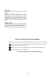 Programöversikt Specialprogram Programbeskrivning Blötläggning Programsekvens Vatten liter Energi kWh Tid min. 5,0 kg 16 0,55 12 - 22 5,0 kg 2,5 kg 29 0,15 46 - 56 15 0,05 20 - 30 5,0 kg - 0,01 2 - 10 Centrifugvarvtal 5,0 kg - 0,03 10 - 20 Sköljstopp Centrifugvarvtal 2,5 kg 40 0,15 25 - 35 - - - Blötläggning 30°C Sköljstopp För tömning, tryck på Start/ Paus-knappen. Efter 24 timmars blötläggning sker tömning automatiskt.