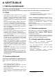 A. KÄYTTÄJÄLLE 1. TURVALLISUUSOHJEET Suosittelemme, että säilytät tämän käyttöohjeen huolellisesti myöhempää käyttöä varten ja annat sen edelleen myös pesukoneen mahdolliselle uudelle käyttäjälle. Ole hyvä ja lue tämä käyttöohje huolellisesti ja huomioi erityisesti turvallisuusohjeet ensimmäisillä sivuilla. 1.1. Käyttö • • • • • • • • • • • • • Vastaanotettuasi uuden pesukoneesi, pura se pakkauksestaan ja tarkista, ettei kone ole vaurioitunut kuljetuksessa.