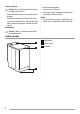 Vattentillförsel 90O Förberedelser A B A C 2 B 1 B 2 1 C Behåll transportbultarna till när du ska flytta produkten. Skär itu dessa plastdelar för att installera produkten på samma nivå som skåpen bredvid. Flytta vid behov tilloppsslangen i den riktning som visas i figuren. För att göra detta, lossa tilloppsslangens ringmutter och rikta tilloppsslangen nedåt såsom visas i figuren. Dra åt ringmuttern och kontrollera att det inte finns några läckor Öppna vattenkranen.