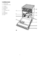 Laitekuvaus 1. Yläkorin pysäytin 2. Vedenkovuusalueen säätö 3. Suolasäiliö 4. Pesuainelokero 5. Ohjauspaneeli 6. Arvokilpi 7. Huuhtelukirkastesäiliö 8. Siivilät 9. Alasuihkuvarsi 10. Yläsuihkuvarsi 11.