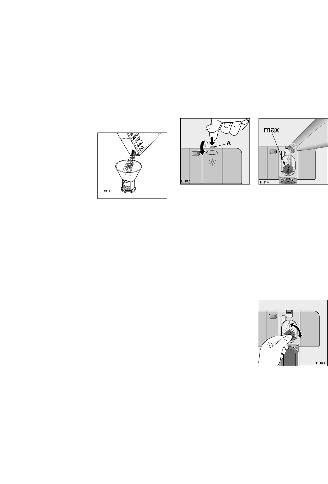 1. Avaa luukku, vedä alakori pois ja kierrä suolasäiliön korkki