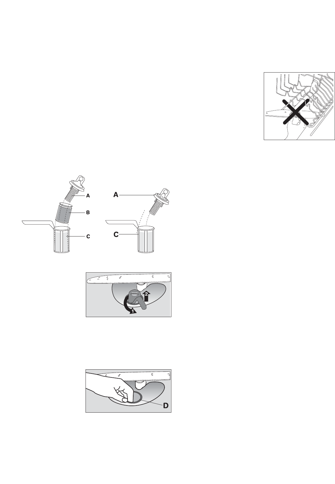 6. Poista litteä siivilä (D) pesuosaston alustasta ja puhdista