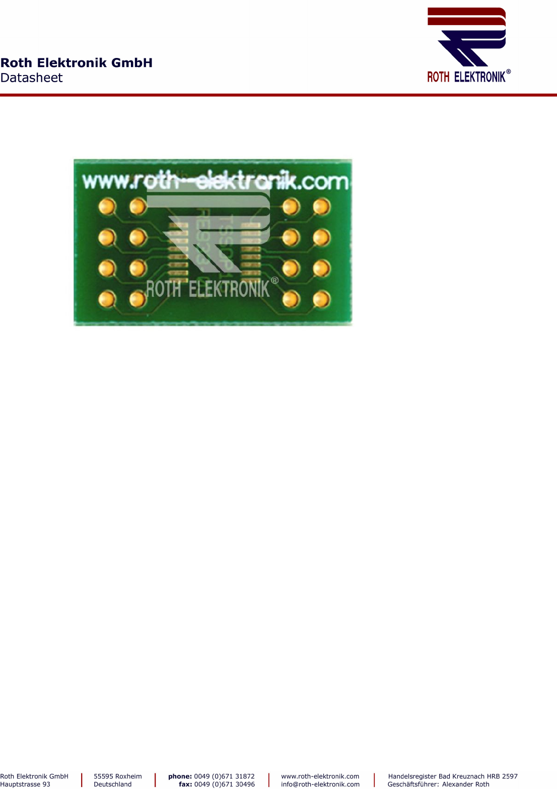 Multiadapters RE933-03 - EPOXY fibre-glass FR4 1.50 mm double-sided 35 µm CU (pth) - Solder and component side with chem. NI/AU surface and solder stop mask - pitch 0.65 mm (173 mil) - pins: 16 - hole dia 1.00 mm - size 13.50 x 23.
