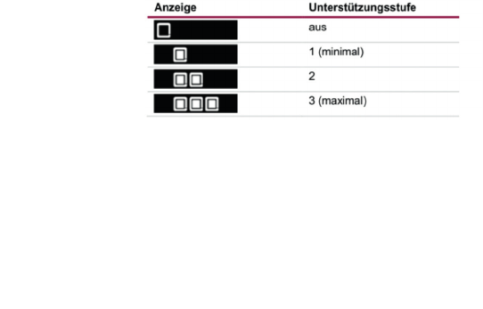 - Betriebsbereitschaft: Ein erleuchtetes Display, welches den Unterstützungsmo-