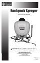 Backpack Sprayer Use and Care Manual BACKPACK SPRAYER CAUTION: Read and follow all instructions Do Not Return This Backpack To The Store For Help, Information or Parts, Call : 1-800-311-9903 The Fountainhead Group, Inc. 23 Garden St., New York Mills, NY 13417 1-800-311-9903 www.TheFountainheadGroup.com Manual No. 181623 Rev F.