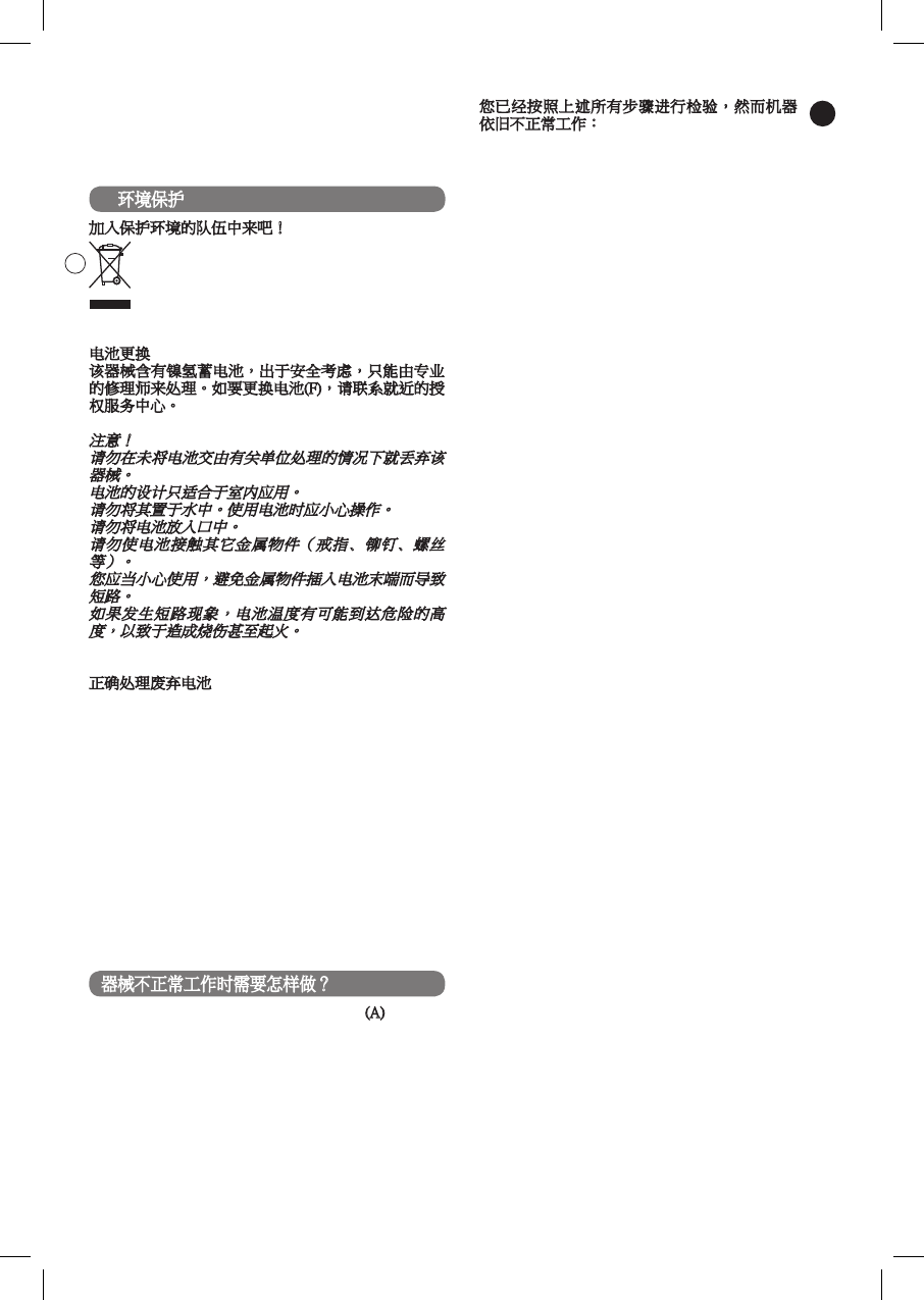 请勿在未将电池交由有关单位处理的情况下就丢弃该