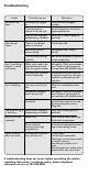 Troubleshooting Issues Iron does not heat. Not enough steam. Iron is emitting a brown or white substance. Iron is leaking. Possible causes Solutions No properly plugged in. Check that iron is plugged correctly. The temperature control is set too low. Set the temperature control to a higher temperature. Auto-off has engaged (depending on model). Move iron or shake it gently to reactivate. There is insufficient water in the tank. Fill the water tank. Iron is not set to a steam setting.