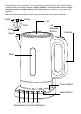 IMPORTANT SAFEGUARDS When using electrical appliances, basic safety precautions should always be followed, including: 1. To protect against electrical hazards do not immerse the power cord, plug, power base, or kettle in water or any other liquid. 2. Do not use this appliance near bathtubs, showers, basins or other vessels containing water. Do not use outdoors. 3. WARNING: Avoid spillage on the power connectors. 4. Always use the appliances handles as some parts may be hot. 5.