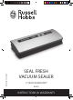 BEFORE FIRST USE • Remove all packaging material and any stickers from the product. • Wipe the outside of appliance with a damp cloth; dry thoroughly. • • As some parts may be packed separately, check to ensure all items have been unpacked before disposing of the packaging. Select a level, dry countertop where the appliance is to be used. ABOUT VACUUM SEALING Your Russell Hobbs Seal Fresh Vacuum Sealer creates a storage solution for a wide range of foods, as well as non-food items.