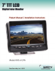 Monitor Specifications TFT LCD Digital Monitor Screen Size 7” Dot Resolution 800H x 3 (RGB) x 480V Display Brightness 400cd/m2 Video Input 3 channel Display Format Viewing Angle Video Source Power Supply Power Consumption 16:9 / 500:1 U:50° / D:60° / R:70° 1Vp-p, 75 DC 12V-24V (+/- 10%) 5W Operating Temperature -30°C ~ +80° C Overall Dimensions 7”L x 5.25”H x 1”D Video System Auto NTSC/PAL Weight 400G Dot Pitch 0.192H x 0.