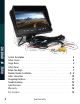 MONITOR SPECIFICATIONS LED Digital Panel Screen Size 7" Dot Resolution 800 X 3 (RGB) X 480 Display Format 16:09 Contrast 500:01 Display Brightness 400 CD/m² Viewing Angle Up: 50° / Down: 60° Left: 70° / Right: 70° Video Input 2 Channels Video Source 1VP-P, 75Ω Power Supply DC 9V - 32V Power Consumption 5W Audio Output 0.5W speaker Operating Temperature -20°C ~ +70° C Storage Temperature -30°C ~ +85°C Video System Auto Auto NTSC/PAL Overall Dimensions 7" (L) X 5.