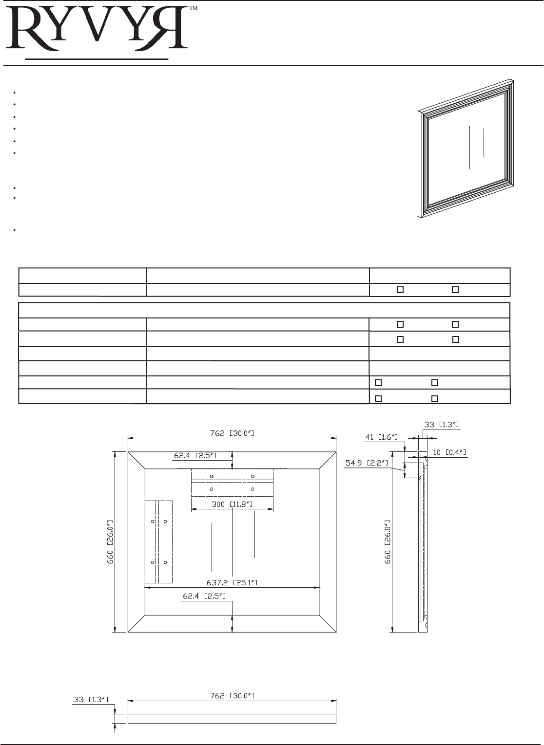 30" Width x 1.3" Depth x 26" Height