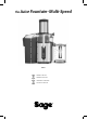 Obsah 2 Důležitá bezpečnostní opatření 11 Popis vašeho nového spotřebiče 13 Složení vašeho nového spotřebiče 15 Ovládání vašeho nového spotřebiče 18 Péče a čištění 20 Tipy na zdravé odšťavňování 23 Řešení potíží DŮLEŽITÁ BEZPEČNOSTNÍ OPATŘENÍ My v Sage® si uvědomujeme důležitost bezpečnosti. Navrhujeme a vyrábíme spotřebiče především s velkým důrazem na vaši bezpečnost. Nicméně vás prosíme, abyste při používání elektrického spotřebiče byli opatrní a dodržovali následující bezpečnostní opatření.