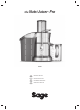 Obsah 2 11 13 18 23 24 26 Důležitá bezpečnostní opatření Popis vašeho nového spotřebiče Složení vašeho nového spotřebiče Použití vašeho nového spotřebiče Péče a čištění Tipy na zdravé odšťavňování Praktické informace o ovoci a zelenině 28 Řešení potíží DŮLEŽITÁ BEZPEČNOSTNÍ OPATŘENÍ My v Sage® si uvědomujeme důležitost bezpečnosti. Navrhujeme a vyrábíme spotřebiče především s velkým důrazem na vaši bezpečnost.