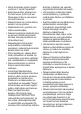 LT • Šio prietaiso negali naudoti vaikai. • Įjungto prietaiso nepalikite be priežiūros. • Tarp kiekvieno naudojimo darykite 1 minutės pertraukas, kad atvėstų variklis. • Tvarkydami ir valydami maišymo peilius, būkite atsargūs, nes jie labai aštrūs. Netinkamai elgdamiesi su peiliais, galite susižeisti. • Besisukant varikliui, taurės ar ąsočio ant variklio korpuso nedėkite. • Kai taurėje ar ąsotyje nėra jokių ingredientų, prietaiso nejunkite.