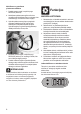 LT • Įjungto prietaiso nepalikite be priežiūros. • Esant didelei apkrovai, prietaisu be pertraukos dirbkite ne ilgiau kaip 3 minutes. • Jeigu maišymo metu į dubenį įkristų toks daiktas kaip šaukštelis ar mentelė, greičio reguliavimo rankenėlę nedelsdami pasukite į padėtį OFF (išjungta), išjunkite prietaisą, ištraukite kištuką iš elektros tinklo lizdo ir išimkite daiktą. • Prieš ardydami prietaisą, įsitikinkite, kad variklis ir plakiklis, plakimo šluotelė ar tešlos kablys visiškai sustojo.