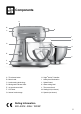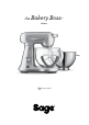 Components A B H C I J D K E L F G A. Tilt-release button H. Sage® Assist™ handles B. Motor head I. Handy bowl illumination D. Mixing task indicator band K. Glass mixing bowl C. Load sensing technology E. 12 speed control dial F. LCD timer G. Internal cord storage J. Splash Guard L. The second bowl M. Sealing lid (not shown) N.