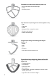 Flat beater for normal to heavy mixtures (Speed 1–9): − Heavy cake batters and biscuit doughs − Pastry − Mashed potatoes Wire whisk for incorporating air into mixtures (Speed 10–12): − Eggs − Egg whites − Cream − Sponge, chiffon or angel food cakes − Meringues and pavlova − Sauces and dressings Dough hook for mixing and kneading yeast doughs (Speed 1–3): − Breads − Rolls − Pizza − Focaccia − Yeast-raised cakes and sweet buns Scraper beater for creaming butter & sugar, mixing sticky ingredients or f