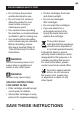 PAGE WE RECOMMEND HEADER..... SAFETY FIRST • • • • • • instruction concerning use of the appliance in a safe way and understand the hazards involved. Use only tap water in the water tank. Do not use any other liquid. Never use the appliance without water in the water tank. Ensure the portafilter is firmly inserted and secured into the brewing head before using the machine. Never remove the portafilter during the brewing operation as the machine is under pressure.
