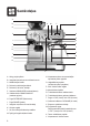 LV 1 6 5 4 2 3 10 7 9 PIEDERUMI 8 6. Ūdens filtra turētājs un filtrs 1. Temp Control™ piena krūze 7. Tīrāmā suka 3. Tīrīšanas tabletes 9. Tīrīšanas rīks 2. Tīrīšanas disks 4. Divslāņu filtra grozi (1 tase un 2 tases) Izmantot ar maltu kafiju. 8. Razor™ precīzas dozēšanas rīks 10. Sešstūra atslēga 5. Vienslāņa filtra grozi (1 tase un 2 tases) Izmantot, maļot veselas un svaigas kafijas pupiņas.
