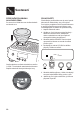PL • Nie używaj urządzenia, jeśli jest umieszczone w zamkniętej przestrzeni lub zabudowie kuchennej. • Podczas odwapniania zachowaj szczególną ostrożność, aby nie oparzyć się wydostającą się parą. Przed włączeniem funkcji odwapniania upewnij się, że zamontowano ociekacz. Więcej informacji w dalszej części instrukcji. • Nie uruchamiaj młynka bez nałożonej pokrywy. Podczas pracy zachowaj ostrożność i unikaj kontaktu palców, rąk, włosów, ubrań lub przyborów kuchennych z pojemnikiem na ziarna kawy.
