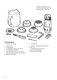 All parts of the Barista Touch™ that come into contact with coffee, water and milk are BPA Free. 1 6 4 5 2 3 7 8 9 10 11 ACCESSORIES 1. 2. 3. 4. Stainless steel milk jug Cleaning disc Cleaning tablets Dual Wall filter baskets (1 cup & 2 cup) Use with pre-ground coffee. 5. Single Wall filter baskets (1 cup & 2 cup) Use when grinding fresh whole coffee beans. 6. Water filter and holder 6 7. Cleaning brush 8. The Razor™ precision dose trimming tool 9. Allen key To disassemble shower screen 10.