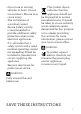 • Do not use in moving vehicles or boats. Do not use outdoors. Misuse may cause injury. • The installation of a residual current device (safety switch) is recommended to provide additional safety protection when using electrical appliances. It is advisable that a safety switch with a rated residual operating current not exceeding 30mA be installed in the electrical circuit supplying the appliance. See your electrician for professional advice.