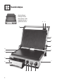 Salikšana GRILA SAGATAVOŠANA LIETOŠANAI 1. Noņemiet visus iepakojuma materiālus un reklāmas uzlīmes un atbrīvojieties no tām drošā veidā. 2. Gatavošanas plātnes un paplāti noslaukiet ar mīkstu, mitru sūkli. Rūpīgi nosusiniet. 3. Pārbaudiet, vai savākšanas paplāte ir pareizi ievietota grilā. 4. Pārbaudiet, vai ēdiena gatavošanas plātnes ir pareizi ievietotas un droši nofiksētas vietā. 5. Grilu novietojiet uz līdzenas, sausas virsmas.