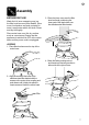 EN Assembly BEFORE FIRST USE Wash the lid, inner measuring cup, jug, the filter bowl surround, filter basket, juicer cover, food pusher and pulp container in warm, soapy water with a soft cloth. Rinse and dry thoroughly. Place motor base on a flat, dry surface such as a countertop. Ensure that the appliance is switched to OFF at the motor base and the power cord is unplugged. 3.