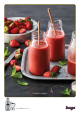 Frappé fruits rouges basilic Temps : 12 minutes 4 personnes the 3X Bluicer Pro™ Environ 6 glaçons (120 g) 300 g de fraises surgelées Environ 12 feuilles de basilic frais (6 g) Environ 2 citrons verts pelés (190 g) 600 g de chair de pastèque pelée coupée en morceaux Préparation 1. Ajoutez les glaçons, les fraises surgelées et les feuilles de basilic dans le pichet du blender et placez-le sous le bec verseur de l'extracteur. 2.
