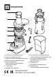 EN Assembly BEFORE FIRST USE Wash the lid, inner measuring cup, jug, the filter bowl surround, filter basket, juicer cover, food pusher and pulp container in warm, soapy water with a soft cloth. Rinse and dry thoroughly. Place motor base on a flat, dry surface such as a countertop. Ensure that the appliance is switched to OFF at the motor base and the power cord is unplugged. 3.
