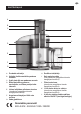 LV TRAUCĒJUMMEKLĒŠANA IESPĒJAMĀ PROBLĒMA VIENKĀRŠS RISINĀJUMS Ierīce ir ieslēgta (slēdzis ir pozīcijā “ON”), bet nedarbojas • Iespējams, ka drošības bloķētājs nav pareizā vertikālajā pozīcijā, nav ievietots divās gropēs katrās sulu spiedes vāka pusē. Spiežot sulu, šķiet, ka stājas motors • Ja sulu spiež pārāk enerģiski, zem sulu spiedes vāka var sakrāties slapjš mīkstums. Mēģiniet palēnināt sulas spiešanu, lēnāk spiežot uz leju produktu stūmēju padeves caurulē.