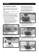 LV SALIKŠANA Drošības bloķētājam tagad jābūt vertikālā pozīcijā un nofiksētam uz sulu spiedes vāka. 6. Virziet stūmēju lejup pa padeves cauruli, savietojot gropi produktu stūmējā ar mazo izvirzījumu padeves caurules augšdaļas iekšpusē. 7. Novietojiet mīkstuma tvertni vietā, viegli sagāžot motora bāzi pa labi. Ievietojiet mīkstuma tvertni zem sulu spiedes vāka kreisajā pusē tā, lai to atbalstītu sulu spiedes vāks un motora bāze.