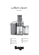 ANWENDUNG 1. Waschen Sie das zum Entsaften vorgesehene Obst und Gemüse. 2. Stellen Sie sicher, dass der Entsafter richtig zusammengesetzt ist. Beachten Sie dazu die Anleitungen zum Zusammensetzen des Sage® juicer. Stellen Sie sicher, dass der Saftkrug unter der Safttülle steht und dass der Tresterbehälter angeschlossen ist, bevor Sie mit dem Entsaften beginnen. 3. Schließen Sie den Netzstecker an eine 220-240V Steckdose. Schalten Sie den Strom ggf. an der Steckdose an.