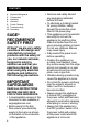 DÉPANNAGE PROBLÈME POSSIBLE SOLUTION FACILE La machine ne fonctionne pas lorsqu’elle est allumée • L’arceau de blocage de sûreté n’est peut-être pas correctement engagé en position de fonctionnement verticale lorsque l’arceau se trouve dans les deux encoches situées de part et d’autre du couvercle de l’extracteur. Le moteur semble caler pendant l’extraction • De la pulpe humide peut s’accumuler sous le couvercle lorsque l’extraction est trop vigoureuse.