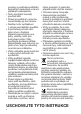 • • • • • • • • poučeny o používání spotřebiče bezpečným způsobem a rozumí případným nebezpečím. Tento spotřebič nesmějí používat děti. Pokud je spotřebič v provozu, nenechávejte jej bez dozoru. Nechte motor vychladnout 1 minutu mezi každým použitím. K protlačení potravin skrz plnicí otvor v žádném případě nepoužívejte ruce, prsty, vařečky nebo jiné kuchyňské náčiní. Vždy používejte dodávaný přítlak. Nepokládejte ruce ani prsty na plnicí otvor, když je nasazený na motorovou základnu.