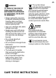 EN • To avoid electric shock, do not immerse the cord, plug or motor base in water (or other liquids). • When operating the oven, keep a minimum distance of 10cm of space on both sides of the appliance and 15cm above. • The temperature of accessible surfaces may be high when the appliance is operating Do not touch hot surfaces. To avoid burns, use extreme caution when removing pans, dishes and accessories such as the included grilling rack and baking pan, that contain hot oil or other hot liquids.