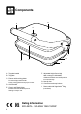 IT Componenti B A E F I G A. Maniglia piastra superiore B. Piastra superiore C. Piastre di cottura lisce antiaderenti Per una tostatura extra croccante. La piastra inferiore è dotata di angoli che si puliscono facilmente. D. Interruttore On/Off E. Spie "Power" e "Ready" H C Indicano quando la pressa per panini è in fase di riscaldamento o pronta per l'uso. D F. Leva per la regolazione dell'altezza Con 3 impostazioni: OPEN MELT, CRUSH CONTROL e LOCK, per la conservazione in verticale. G.