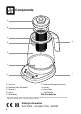 IT Componenti A B C G D E F I H A. Coperchio interno B. Filtro per tè in acciaio inossidabile C. Coperchio esterno D. Beccuccio di uscita E. Brocca in vetro F. Sensore di temperatura a immersione G. Manico H. Base di alimentazione I.