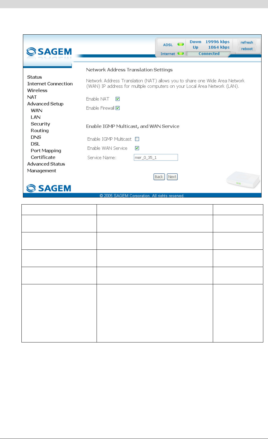 • Click on the Next button to continue configuring the remote network (WAN) in MER mode.