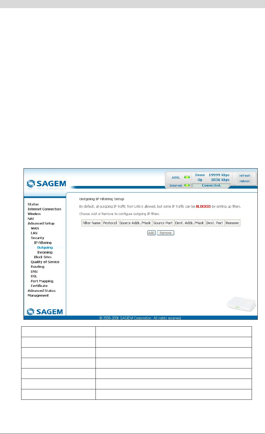 • Select the Outgoing sub-menu in the Security menu in the Advanced Setup section to