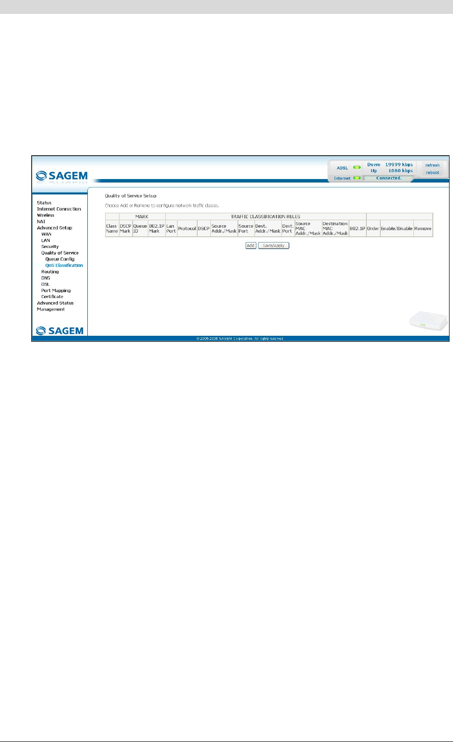 • Select the QoS Classification sub-menu in the Quality of Service menu to display the