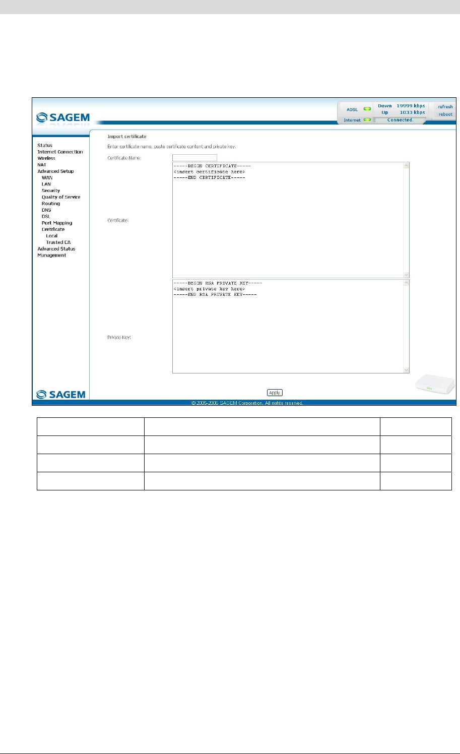 • Click on the Import Certificate button to display the following screen: