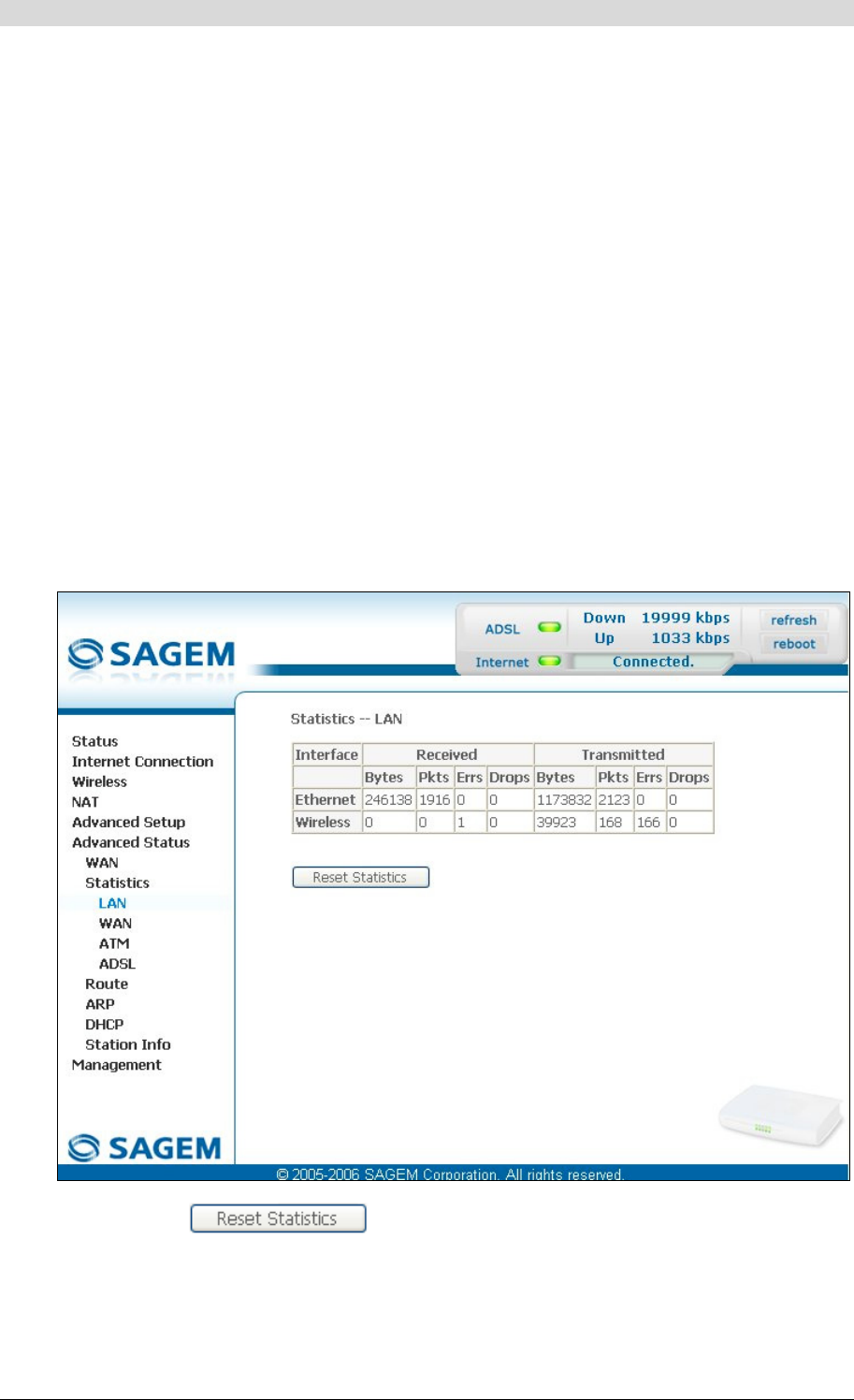 • Select the LAN sub menu in the Statistics menu in the Advanced Status section to