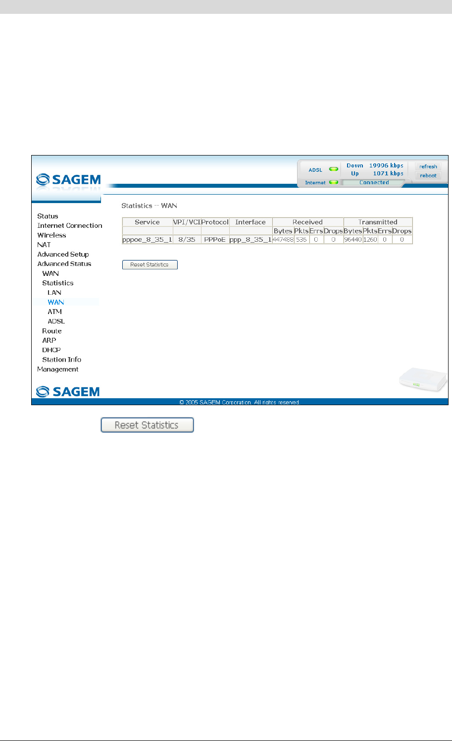 • Select the WAN sub menu in the Statistics menu in the Advanced Status section to
