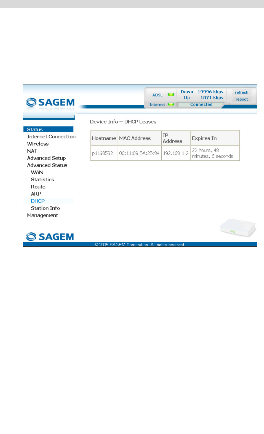 • Select the DHCP menu in the Advanced Status section to display the following screen: